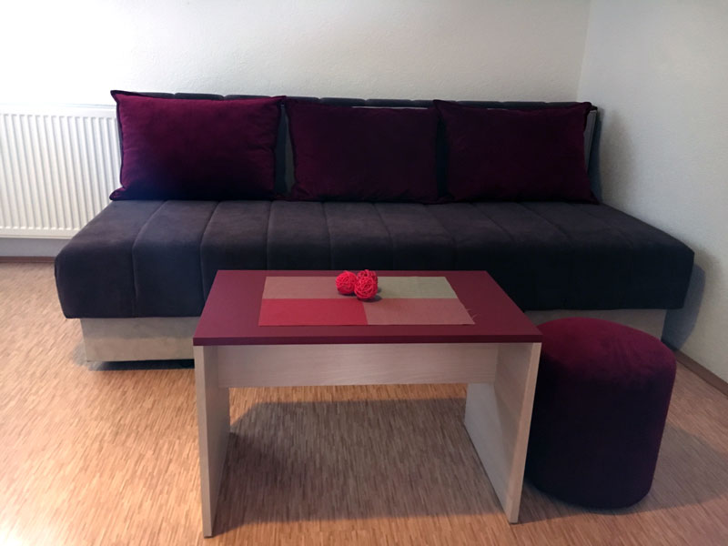 spavaća soba sa francuskim ležajem, kuhinja sa trpezarijom, dnveni boravak sa grofom na rasklapanje, kablovska TV, wireless internet, kupatilo i parking.