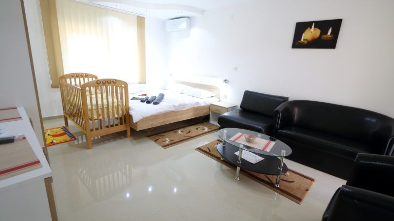 Parking, wifi, kablovska TV, video nadzor, klima u svakom apartmanu.