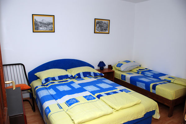 Ovaj apartman ima svoju posebnu spavacu sobu sa francuskim i jos jednim lezajem, dnevni boravak u kome se nalazi lezaj na rasklapanje TV prijemnik sa KDS-om od 22 domacih i stranih kanala. U okviru dnevnog boravka nalazi se i opremljena kuhinja sa svim osnovnim posudjem. Takodje apartman ima i svoje kupatilo. Ispred apartmana se nalazi terasa, a u produzetku dvoriste sa garniturama za sedenje gde mozete odmarati i rostiljati.